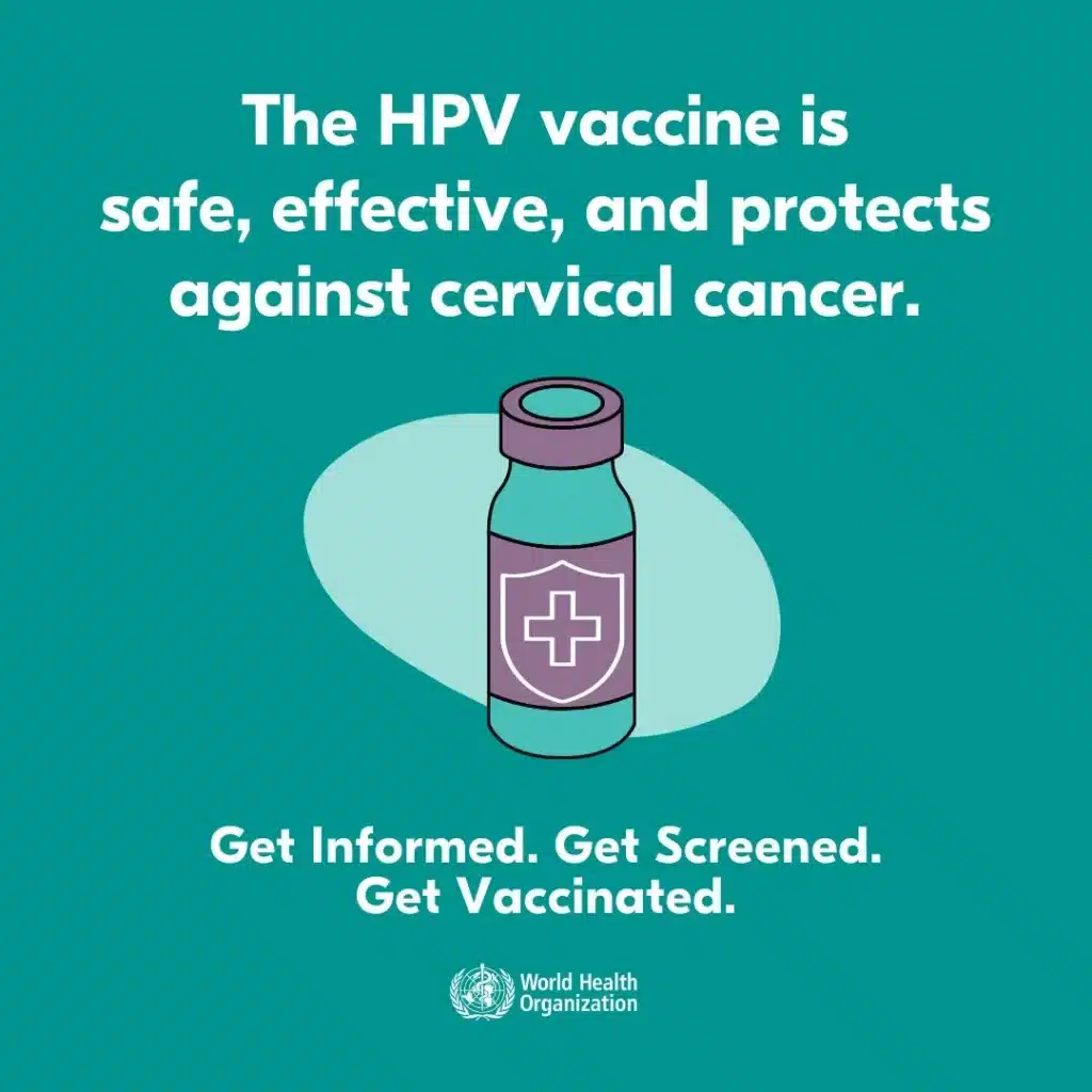 The HPV vaccine protects against the types of HPV that most often cause cervical, vaginal, and vulvar cancers.