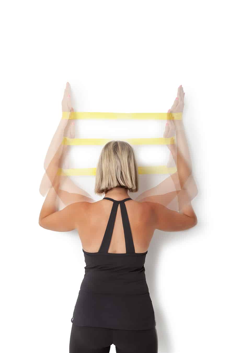 Exercise Rx: Begin with no resistance, making sure that your client’s spine is in “neutral” and they are not excessively arching their lower back (adjust their stance and distance from the wall accordingly). Instruct them to engage their abdominal muscles. This may be difficult for many, as they do not always have the kinesthetic awareness required to engage core musculature. They will need to retract their shoulder blades as they “crawl” up and down the wall. When their form is excellent, and there is no discomfort in the absence of resistance, begin with the lightest resistance (band) possible. Instruct them to hold the band between the fingers of each hand, until desirable resistance is achieved. They will be pulling their bent arms out to the sides, against the resistance of the band, as they “crawl” up and down the wall. Start with just a few repetitions and make sure that there is no swelling in the next 24-28 hours. Gradually add repetitions and greater resistance.